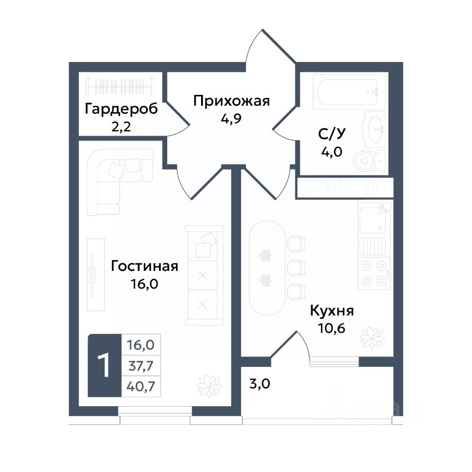 продам 1-к, Андрея Голуба, 11б4 070 000 ₽
