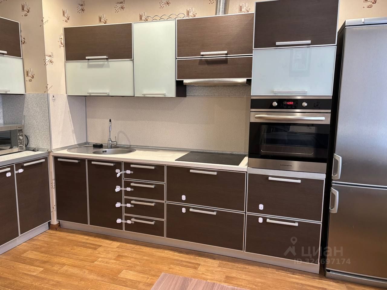 Вся необходимая мебель и техника в наличии, Холодильник, стиральная машина, посудомоечная машина, духовой шкаф, индукционная плита. Двуспальная кровать, два больших шкафа купе. Одна из комнат пустая, без мебели.
