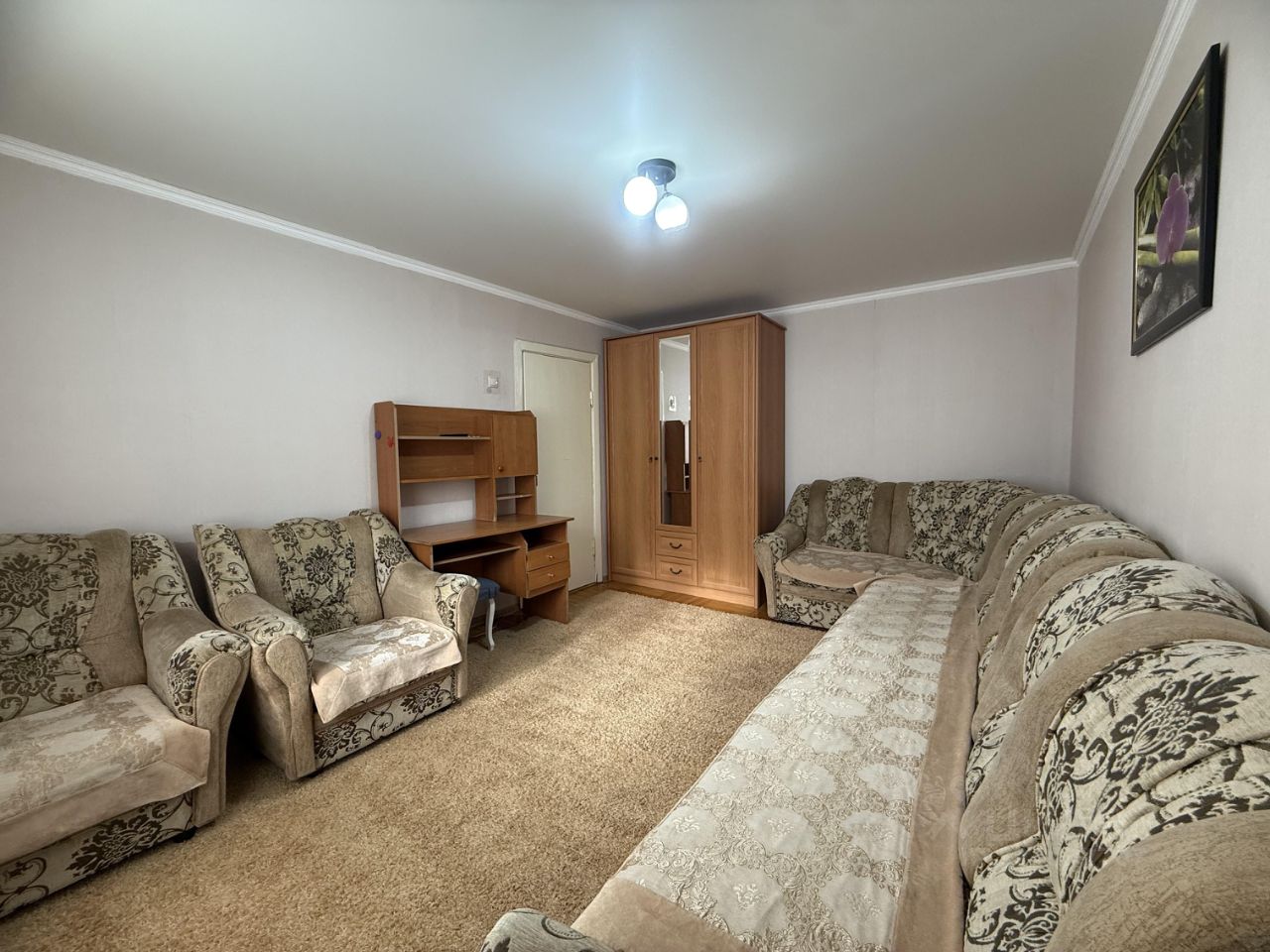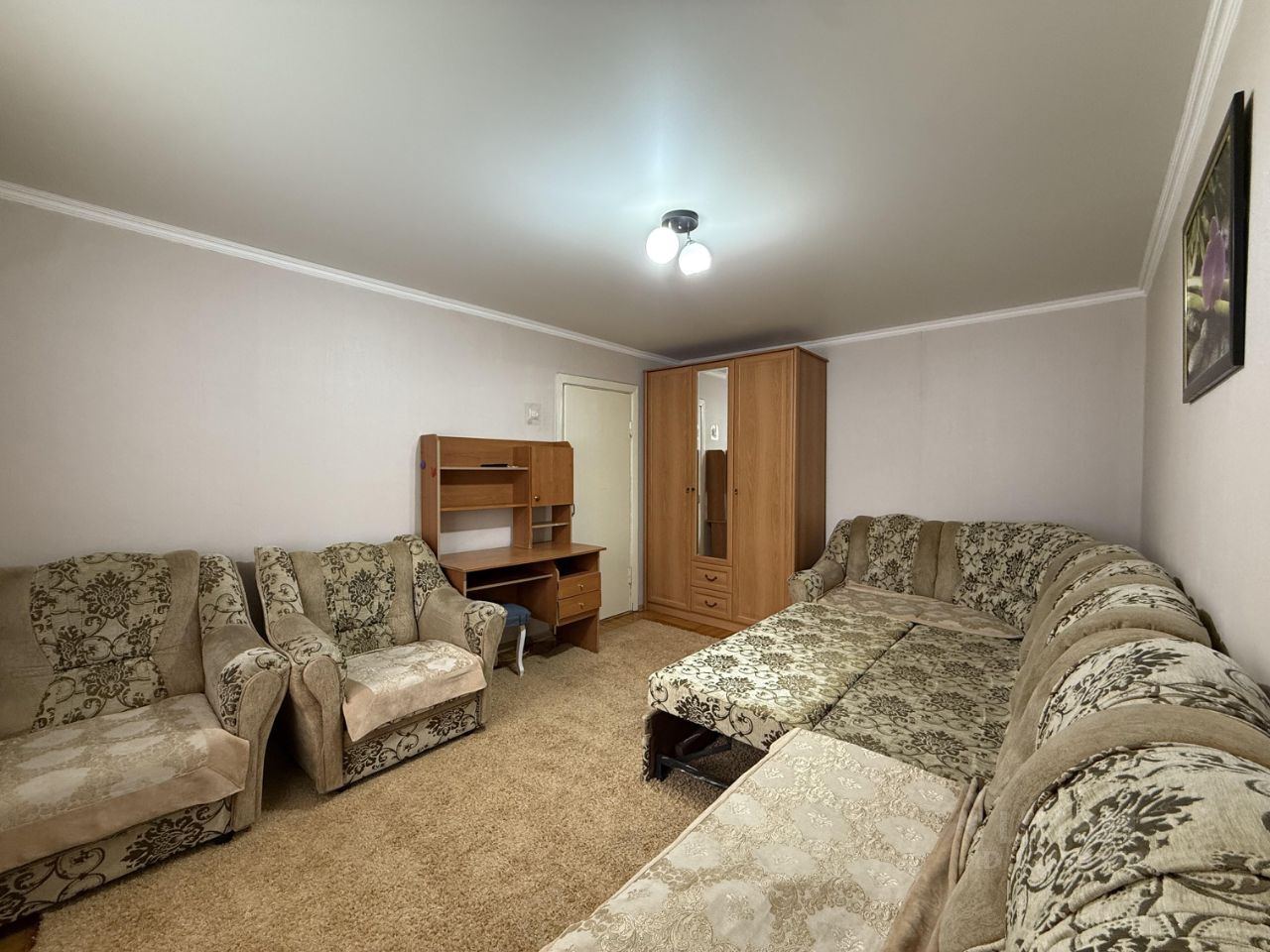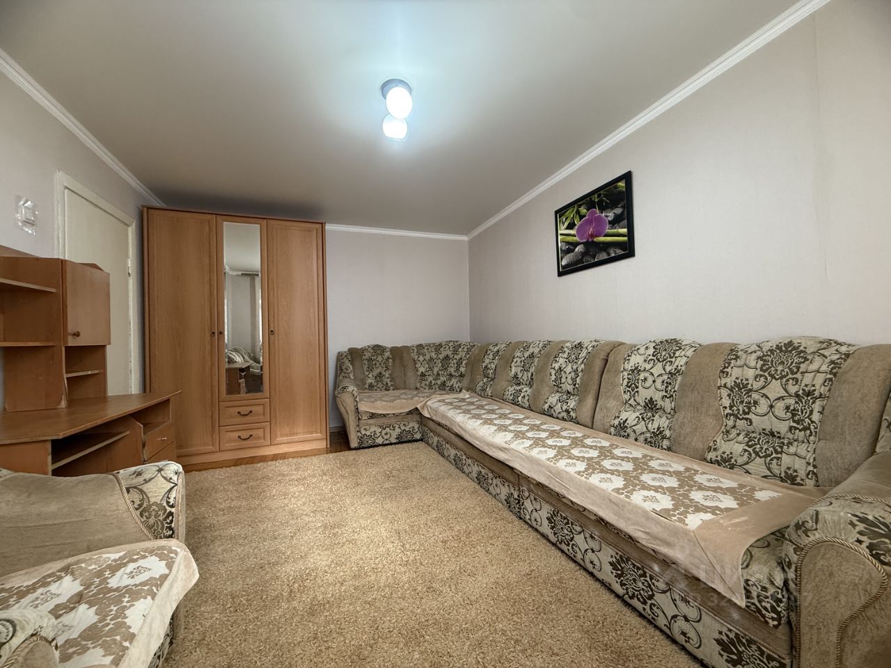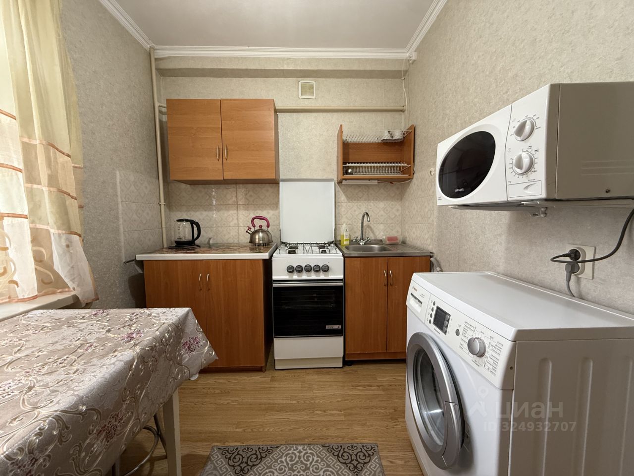 В квартире выполнен косметический ремонт, есть все необходимое для комфортного проживания. Кухня оборудована мебелью и необходимой техникой: холодильником и стиральной машиной. В комнате также есть мебель, что позволяет сразу заселиться без дополнительных хлопот. Санузел совмещенный, в ванной есть ванна для вашего удобства. Окна выходят во двор, поэтому в квартире всегда тихо и спокойно.