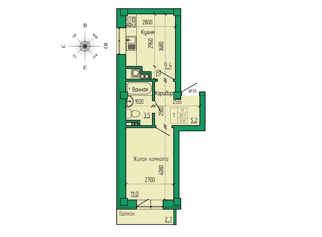 Общая площадь31,8 м2
