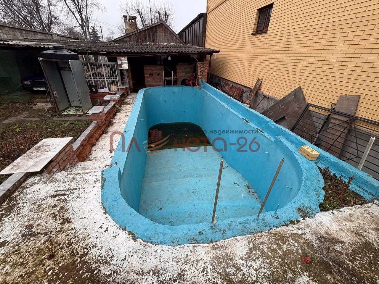 Земля: 6 соток в аренде на 49 лет. Бассейн, сад, огород, въезд на 3 машины большой навес