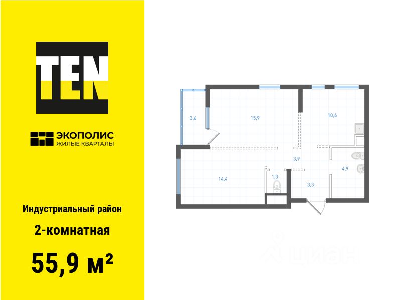 Квартира в ЖК ''Экополис'' в Индустриальном районе от застройщика TEN девелопмент! Ключи в 3 квартале 2026 года.
