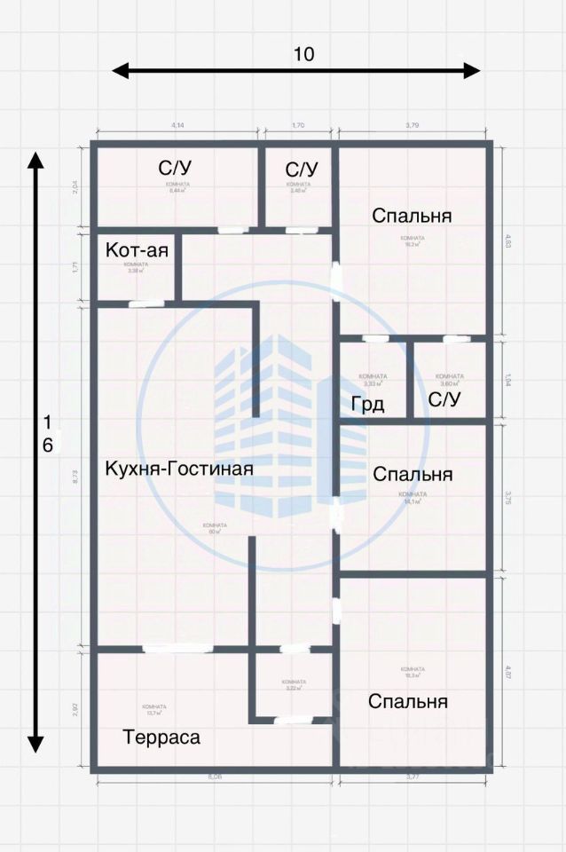 Эргономичная планировка. Три изолированные спальни, одна из которых мастер-спальня. Кухня гостиная с панорамным остеклением и выходом на террасу. Подвальное помещение 30 кв.м.