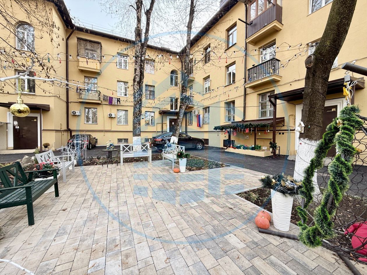 Кирпичный дом 1955 года постройки в стиле Сталинского классицизма. После капитального ремонта, фасада, кровли, инженерных систем. Благоустроенная придомовая территория. Парковочные места, детская площадка.