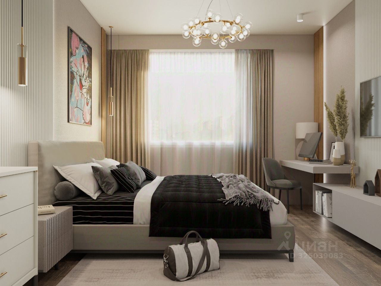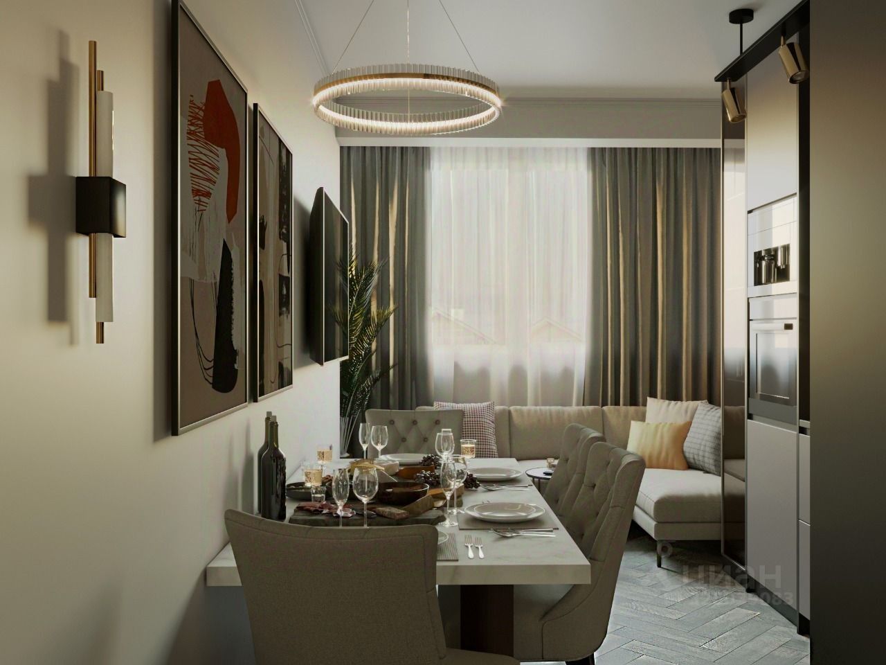 В квартире выполнено пред чистовая отделка. Большая современная кухня. Система тёплые полы.