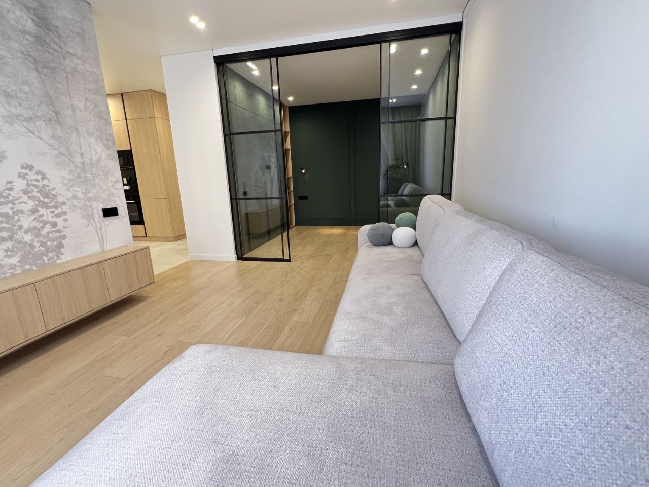 В квартире выполнен дизайнерский ремонт с использованием качественных материалов. Просторная кухня отлично подходит для семейных обедов и встреч с друзьями. В квартире есть одна лоджия, где можно насладиться утренним кофе или вечерним отдыхом. Современный санузел оборудован всей необходимой сантехникой.