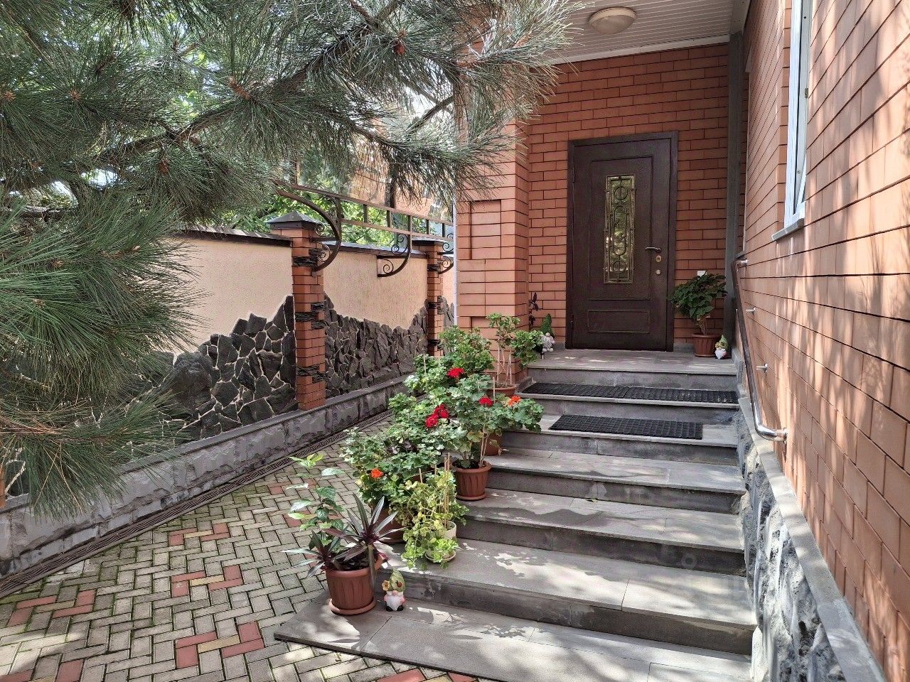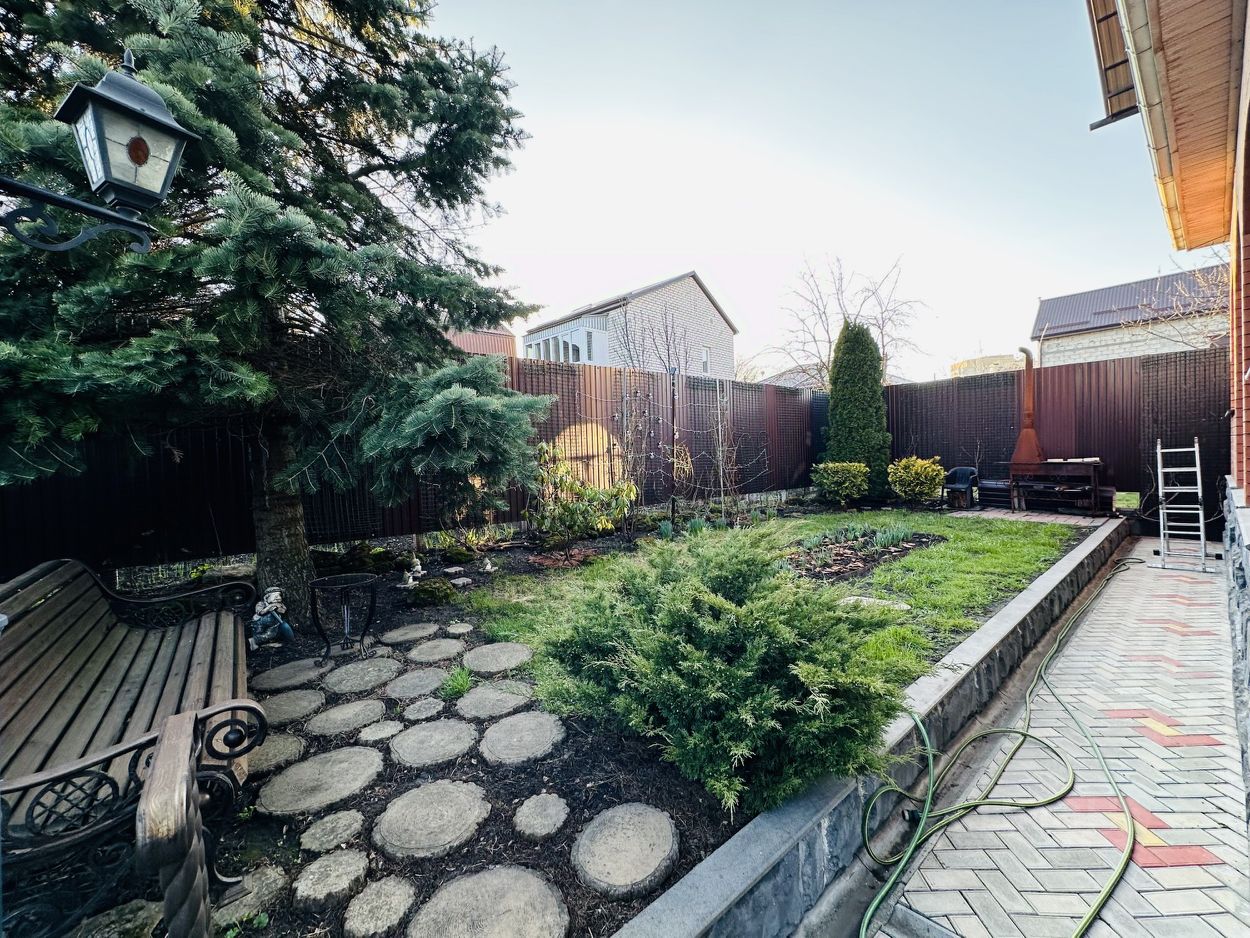 Еще одна ''фишка'' - забор по периметру декорирован камнем редкой породы, а вокруг клумбы с цветами, ландшафтный дизайн с многолетними соснами, хвоей и кустарниками. Имеются зоны отдыха и барбекю. Все коммуникации центральные. Школы, детские сады, поликлиники, магазины, аптеки в 5 минутах ходьбы.