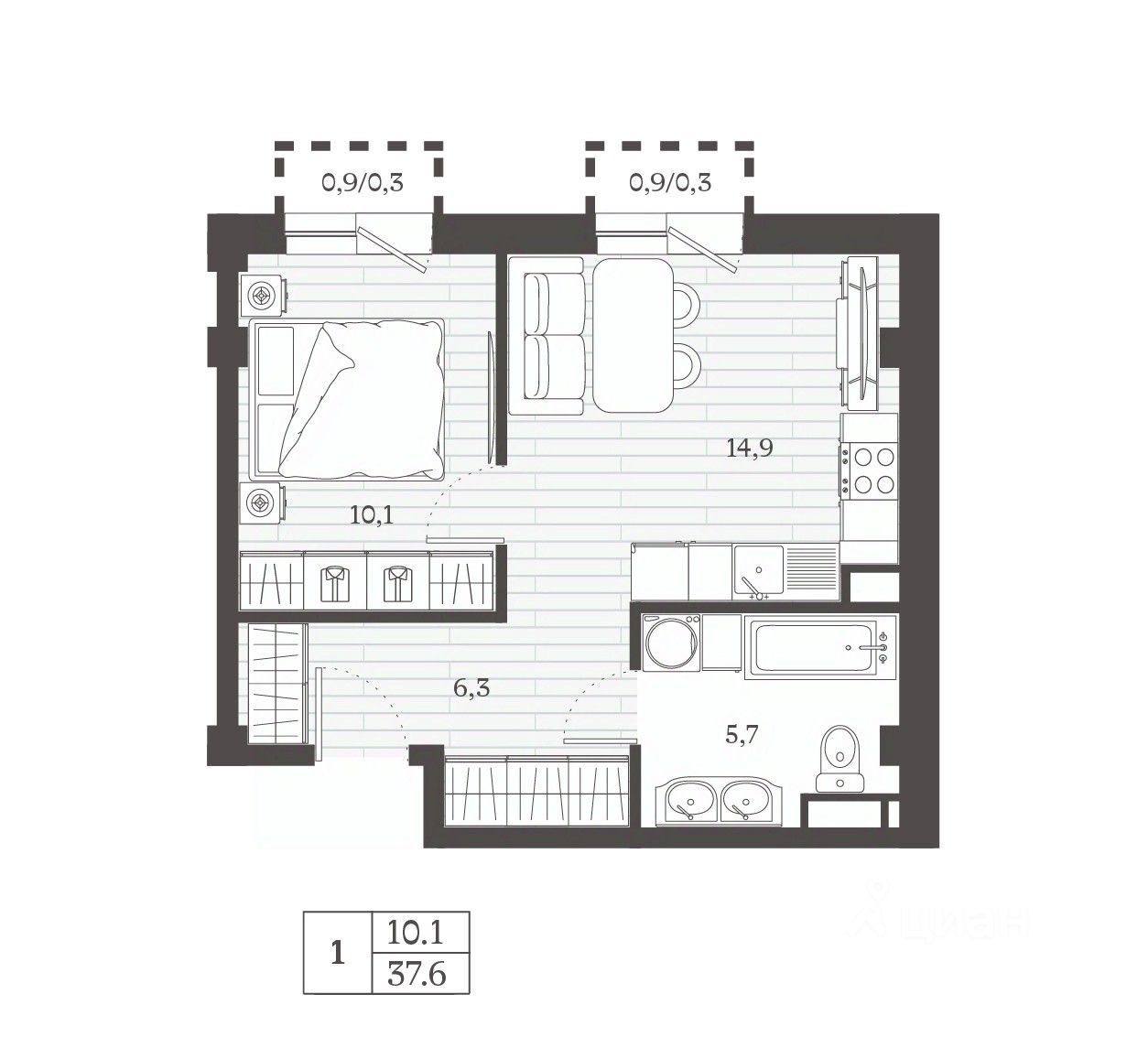 Большие окна и обширные лоджии создают световую галерею: естественный свет зонирует планировку на световые поля, а вечерняя палитра горизонта становится частью дневной эстетики