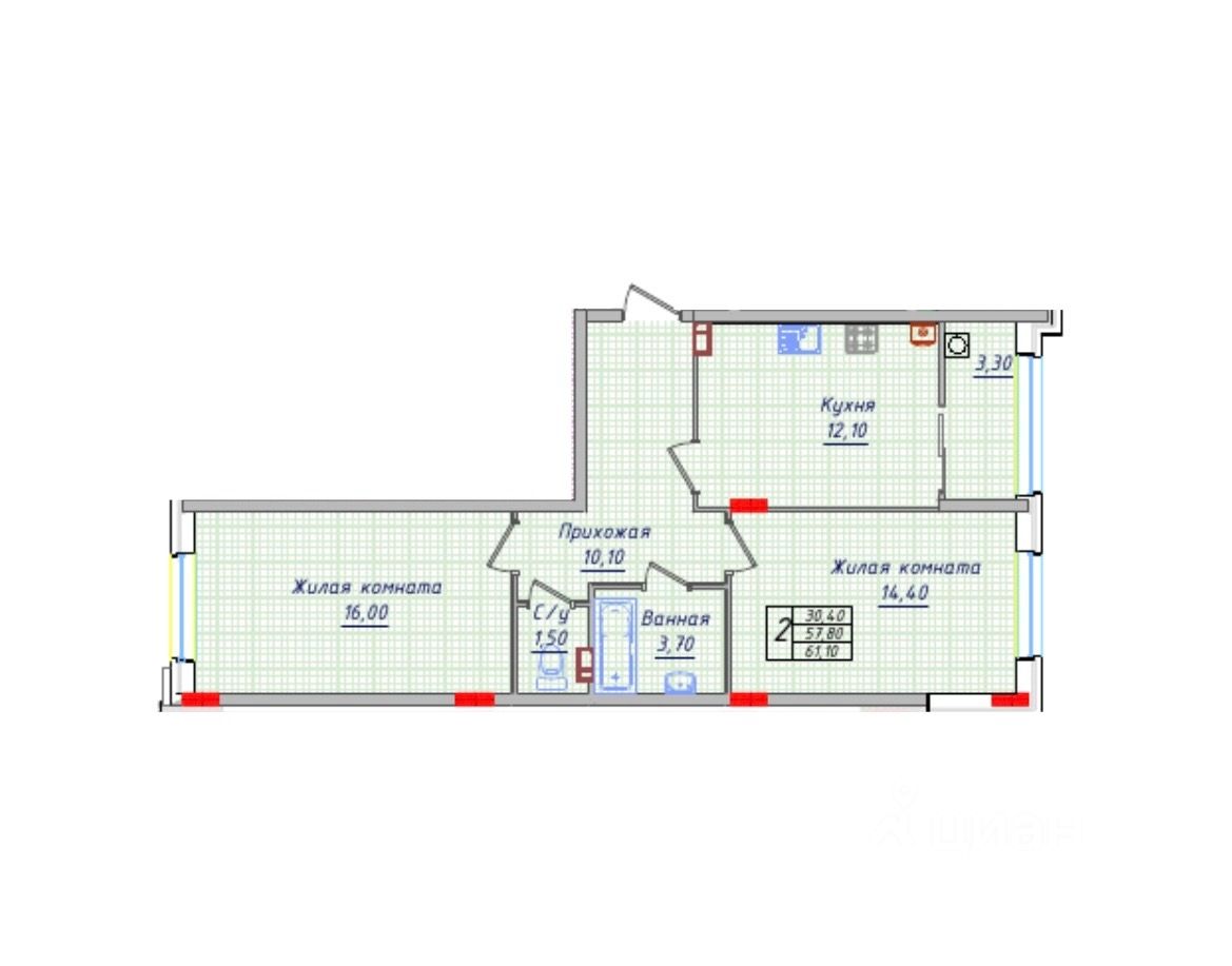 Общая площадь61,1 м2