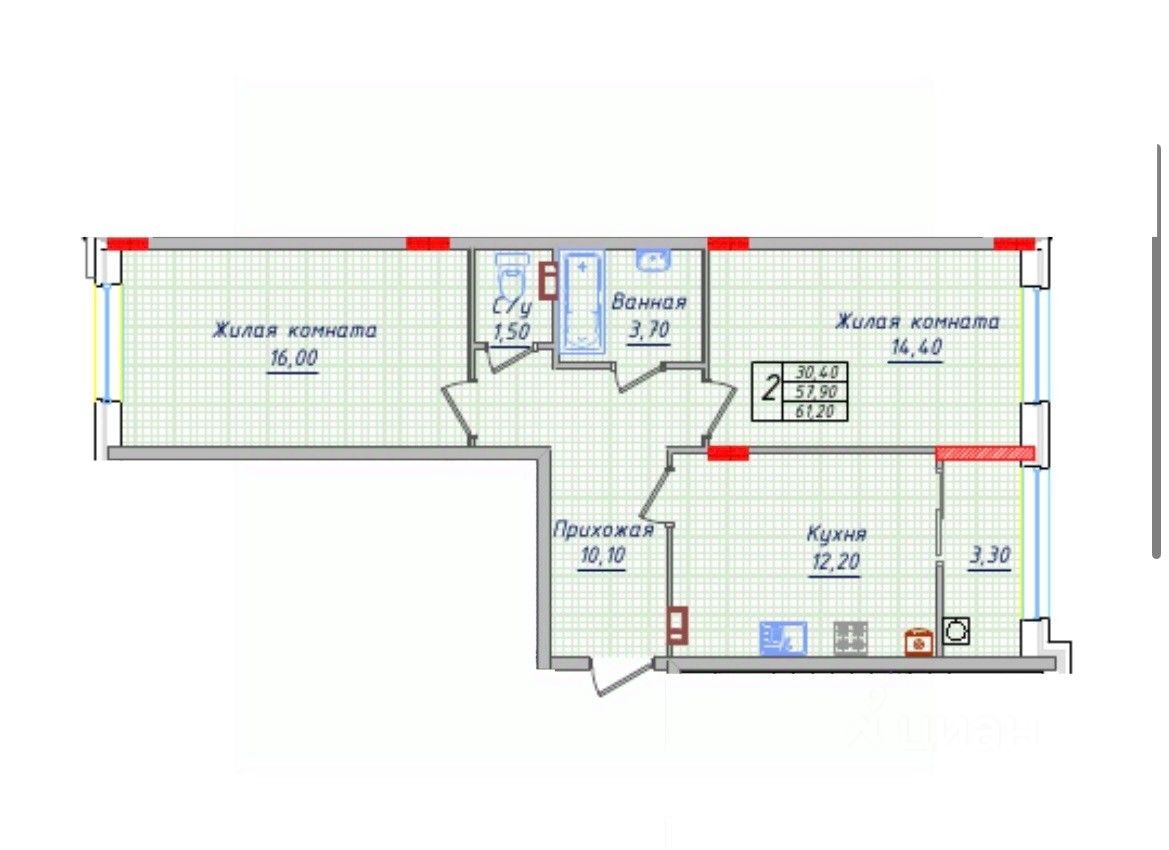 Общая площадь61,2 м2