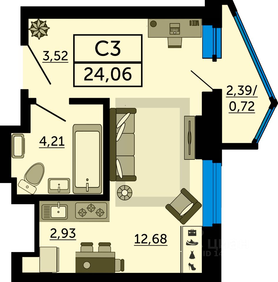 В продаже квартира-студия в новостройке, в стройварианте. Лучшее решение для молодой семьи, под сдачу или для инвестиций. Это современный вариант просторной студии с полноценной прихожей. Благодаря продуманному зонированию при входе достаточно места для зоны хранения вещей. Вся площадь будет использована максимально эффективно для работы и отдыха. Наиболее выгодная цена на этапе строительства. Успейте забронировать квартиру мечты напрямую от застройщика.