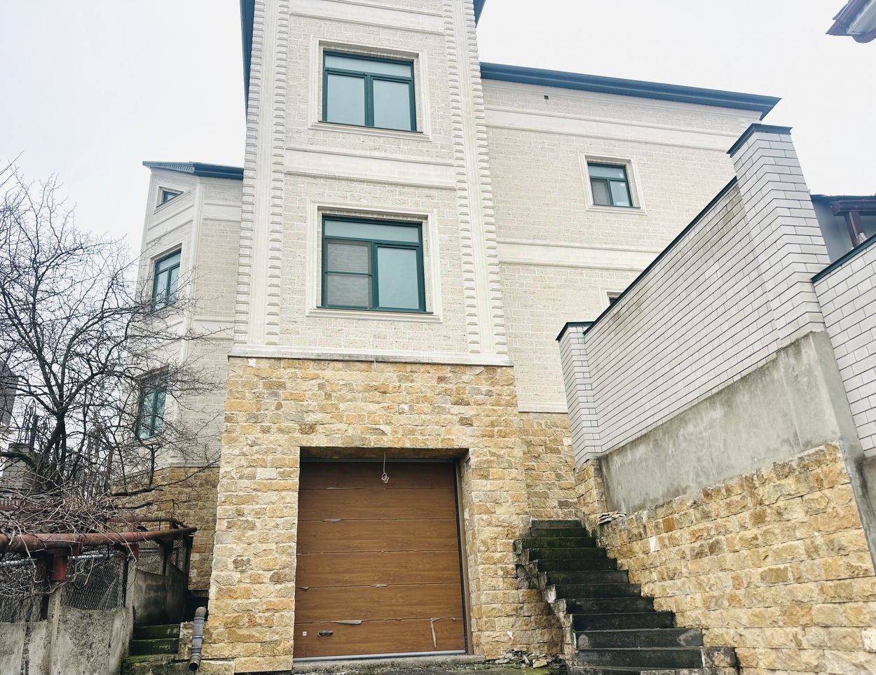 Дом строился для собственного проживания. Непростая конструкция фундамента: сваи, глубина фундамента, кирпичная кладка, бетонное плито перекрытие, облицовка дагестанским камнем двух видов, утепленная крыша...
