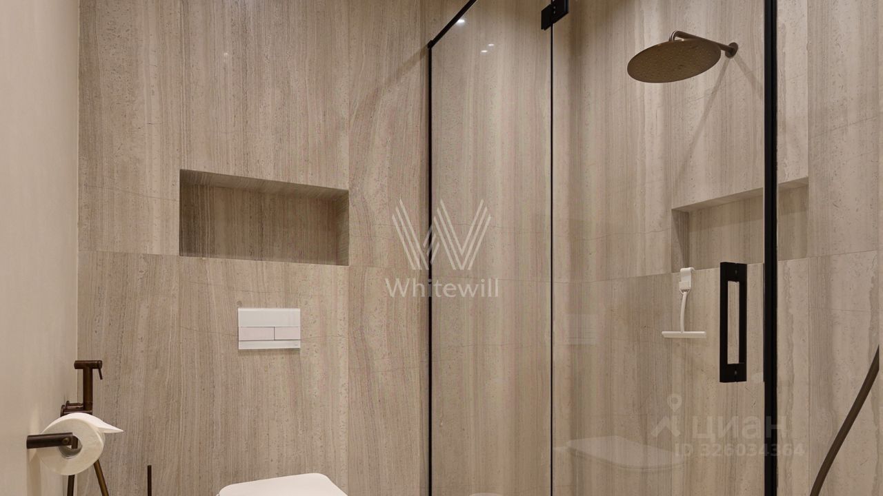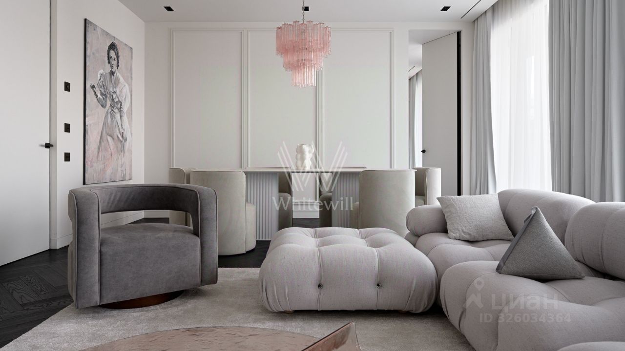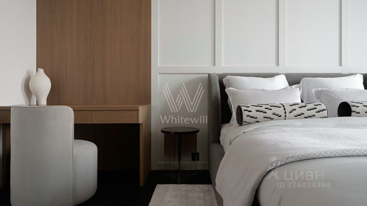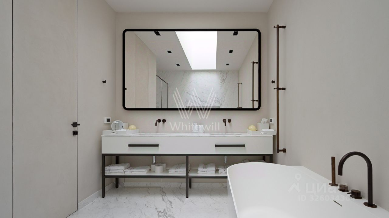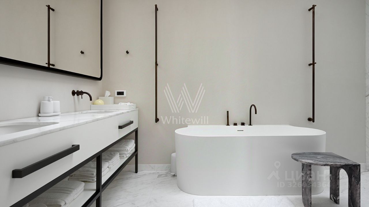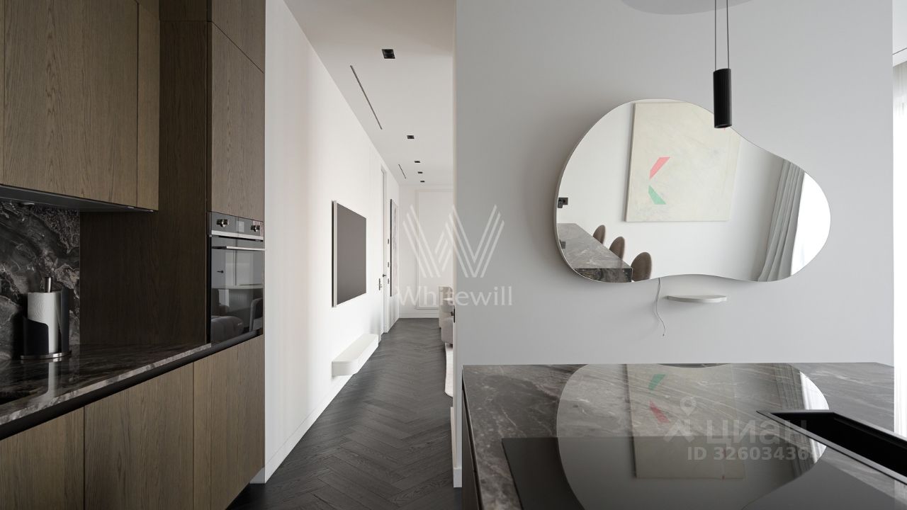 Спланирована кухня-гостиная с камином, мастер-спальня с ванной комнатой и рабочей зоной, 2 спальни со своими санузлами, гостевой санузел, гардеробная, постирочная, прихожая. Квартира полностью меблирована и оборудована встроенной бытовой техникой. Квартира оснащена системой ''умный дом'', приточно-вытяжной вентиляцией с двухступенчатой очисткой воздуха, системой фильтрации воды до уровня родниковой. В стоимость входит машино-место в подземном паркинге.
