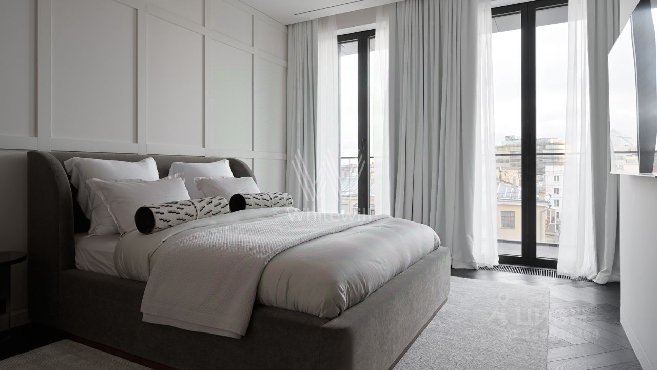 Квартира с 3 спальнями общей площадью 200 м² в клубном доме делюкс-класса ''Тургенев'' на 8 этаже. Выполнен дизайнерский ремонт в современном стиле в светлых тонах. Установлена кухня Cesar c островом и столешницей из натурального итальянского мрамора. Панорамные окна наполняют пространство светом и открывают виды в благоустроенный двор. В квартире никто не жил.