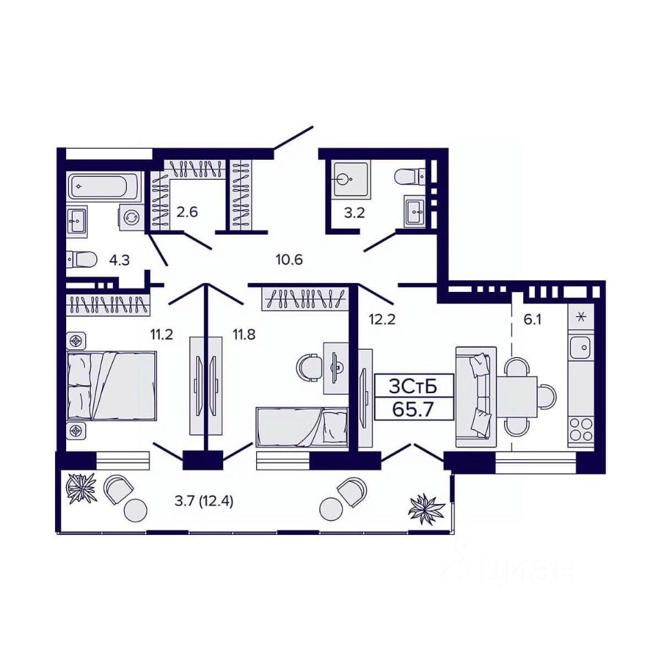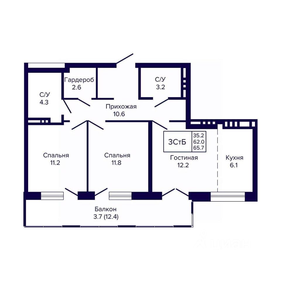 Общая площадь65,7 м2