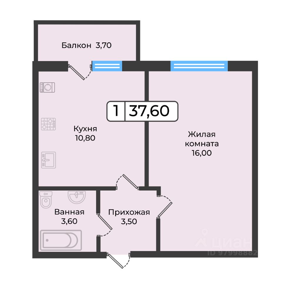 продам 1-к, Рогожникова, 214 549 600 ₽