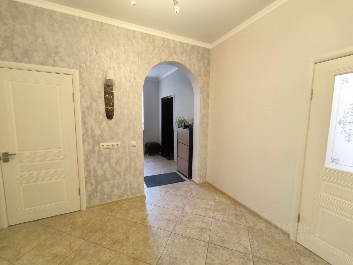 Современный просторный жилой дом расположен на ухоженной, широкой асфальтированной улице. Участок большой площади — около 8 соток, обеспечивает комфортное пространство для отдыха и обустройства сада. Широкий фасад здания длиной 30 метров придает дому величественный вид.