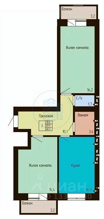Отличный вариант квартиры на две стороны с двумя застекленными балконами по 3,2 кв.м.