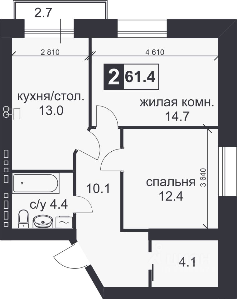 Общая площадь61,4 м2