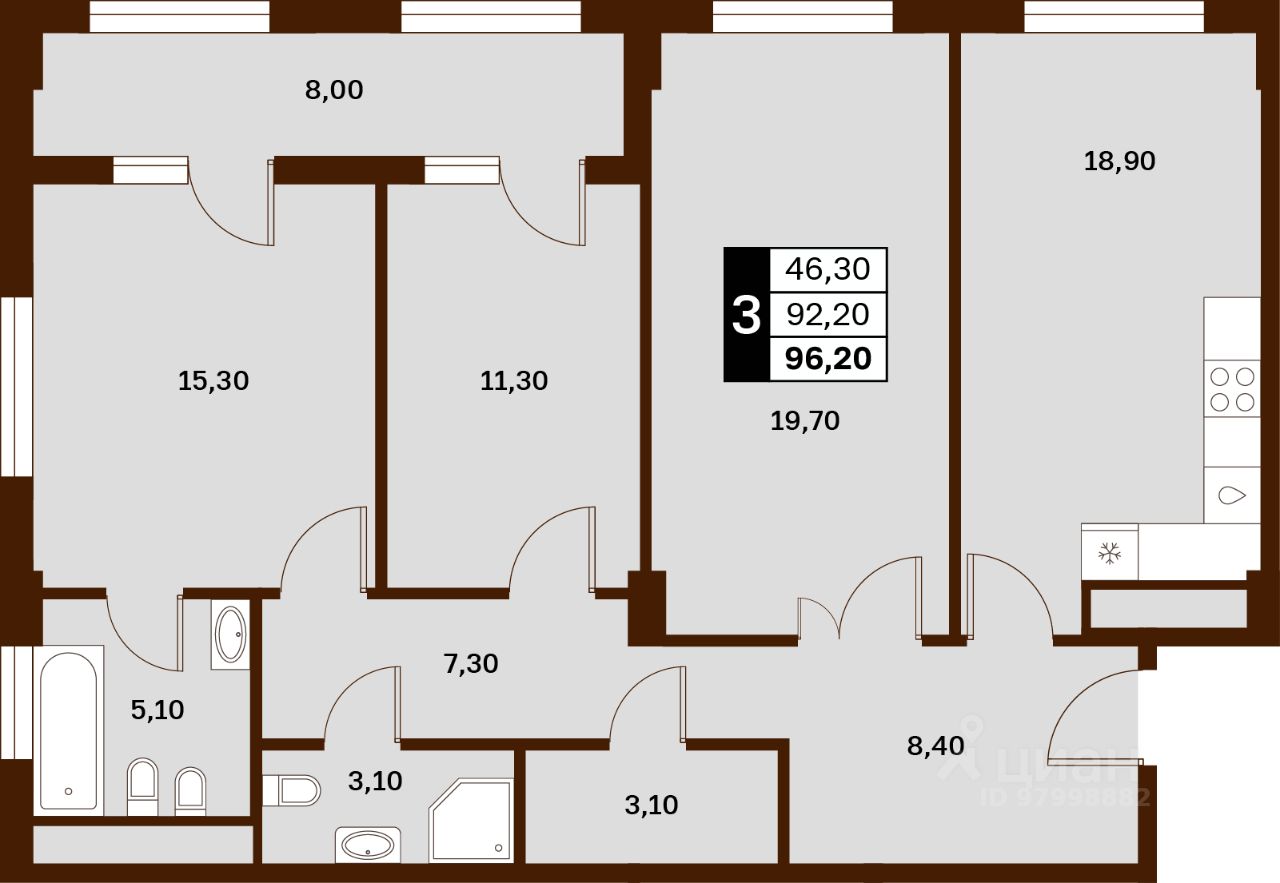 Продаётся 3-комнатная квартира в строящемся доме (Литер 1), срок сдачи: III-кв. 2030, общей площадью 96.2 кв.м., на 11 этаже. Новый жилой комплекс ''Аксис Патриот'' от застройщика ''СЗ Аксис Девелопмент - Ставрополье'' расположен по адресу: г. Ставрополь, улица Артёма.