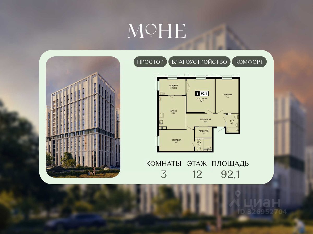 Оставьте заявку — менеджер подберет планировку, рассчитает ипотеку и забронирует 3-комнатную квартиру. 3-комнатная квартира в ЖК ''Моне. Дом у озера'' — комфорт, готовый ремонт, курортные виды и выгодные условия для жизни и инвестиций!