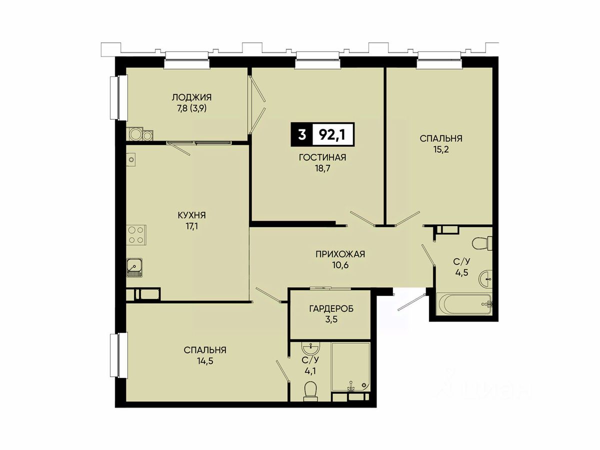 Общая площадь92,1 м2