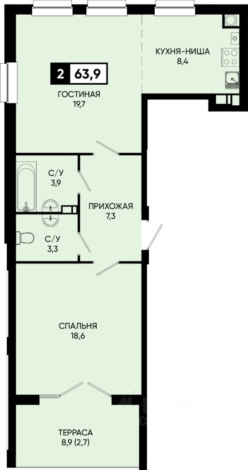 Общая площадь63,7 м2