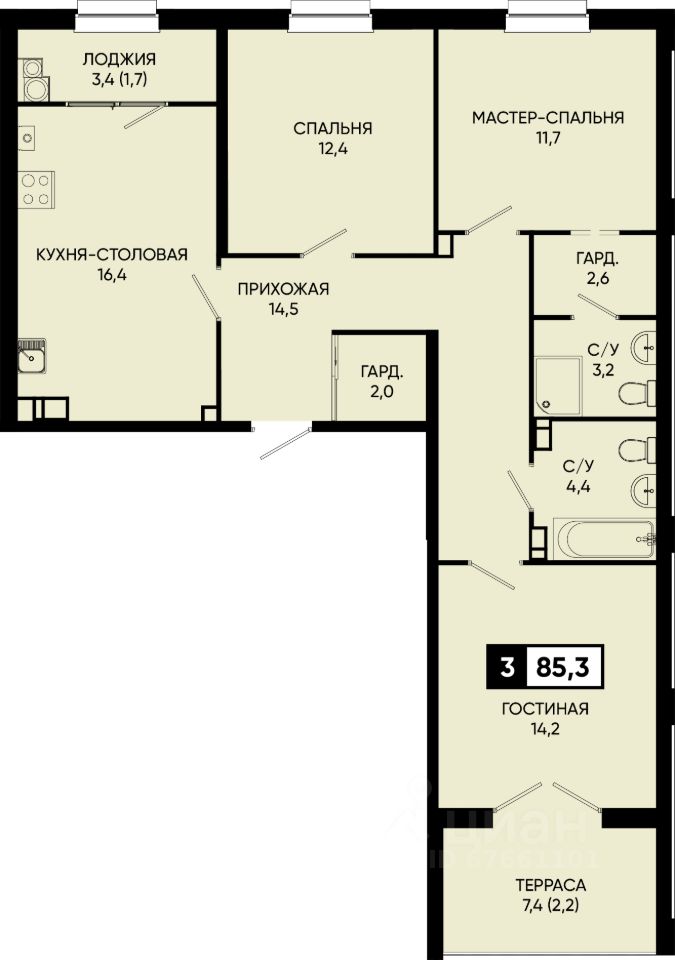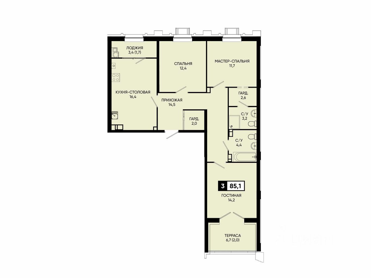 Общая площадь85,1 м2