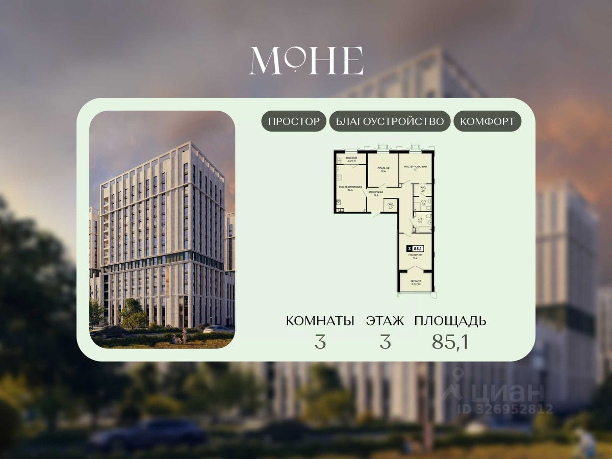ЖК ''Моне'' — курортная премиум-недвижимость: — 5 домов с низкой плотностью застройки, закрытая клубная территория, — Собственный сквер 0,5 га и прогулочная аллея, — Приватные дворики-патио, детский сад на 160 мест и физкультурно-оздоровительный комплекс, — Подземный и наземный паркинг, парковка по цене квартиры и рассрочка 0%, — Холлы с дизайнерской отделкой, натуральные материалы, большое количество света, — Коммерческие помещения на первом этаже: магазины, кафе, салоны и пункты выдачи.