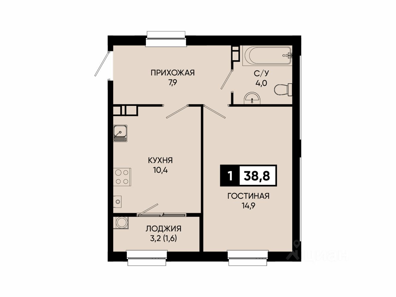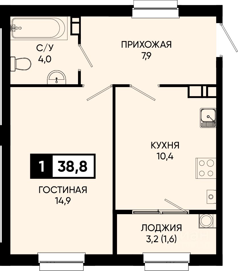 Общая площадь38,8 м2