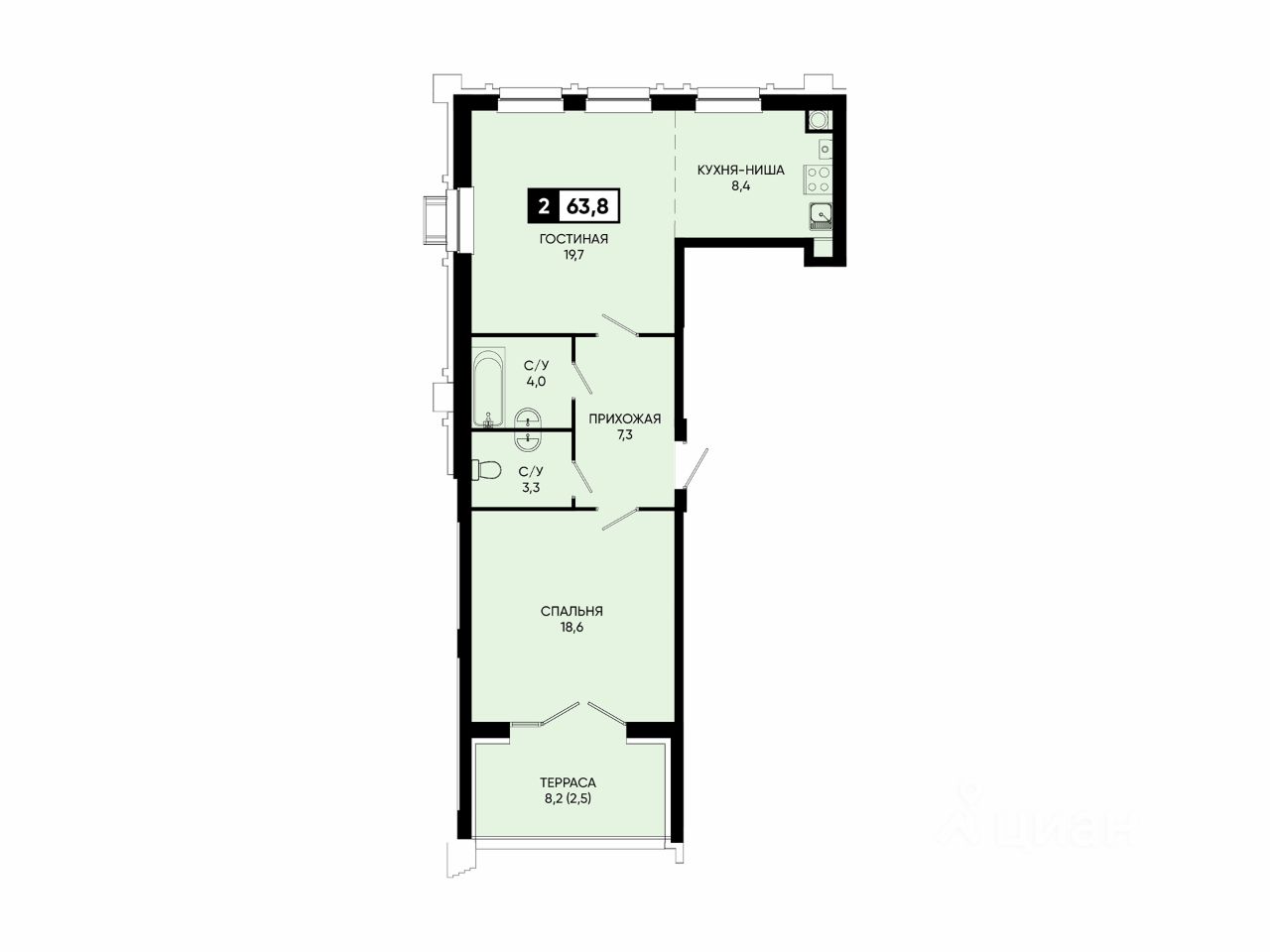Общая площадь63,8 м2
