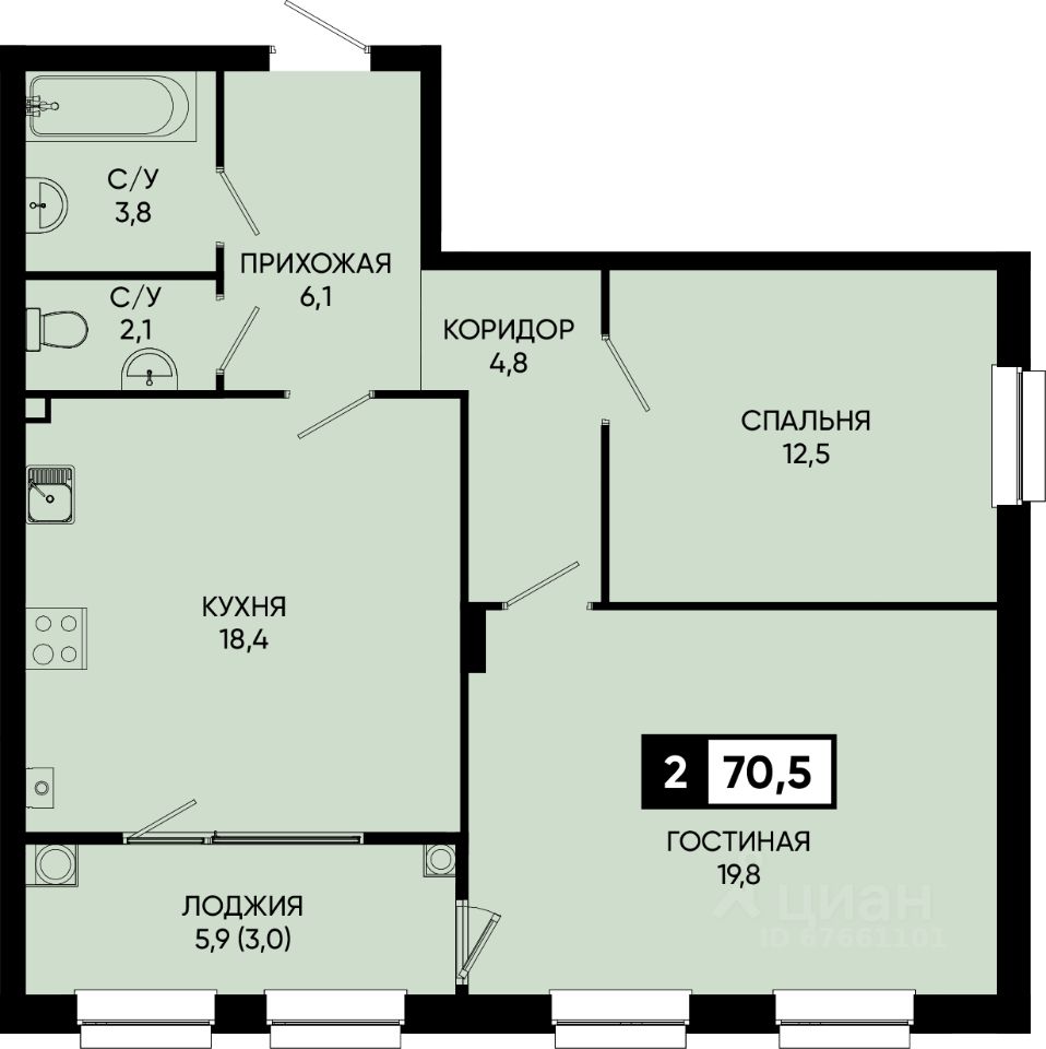 Кухня18,4 м2