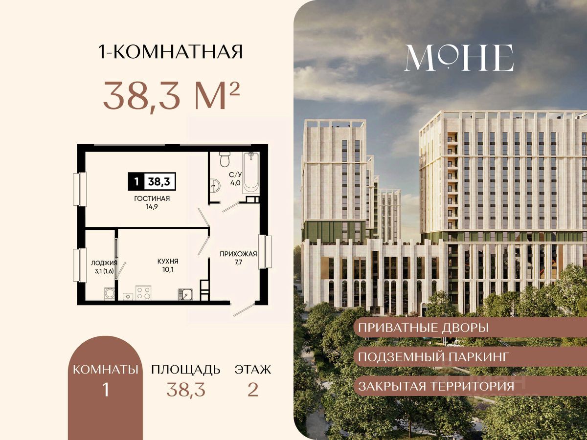 Почему стоит выбрать 1-комнатную квартиру в ЖК ''Моне'': Комфортная планировка для самостоятельной жизни или аренды Отличная инфраструктура и развитая территория Скидки и выгодные ипотечные программы Надежный застройщик ЮгСтройИнвест Удобное расположение и транспортная доступность.