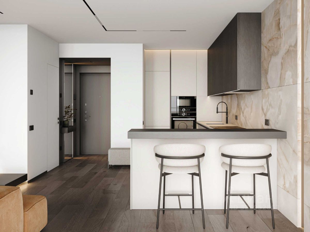 Планировка: Идеальная планировка для одного человека или пары: светлая кухня, просторная зона для отдыха и большая гардеробная Современная отделка и высокое качество материалов, которые обеспечат уют с первых дней проживания