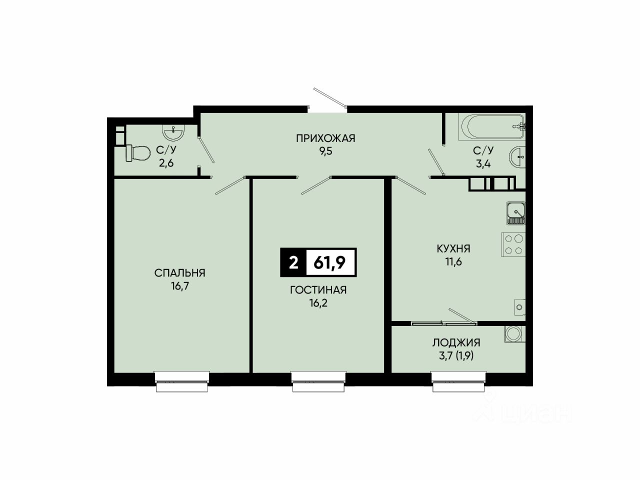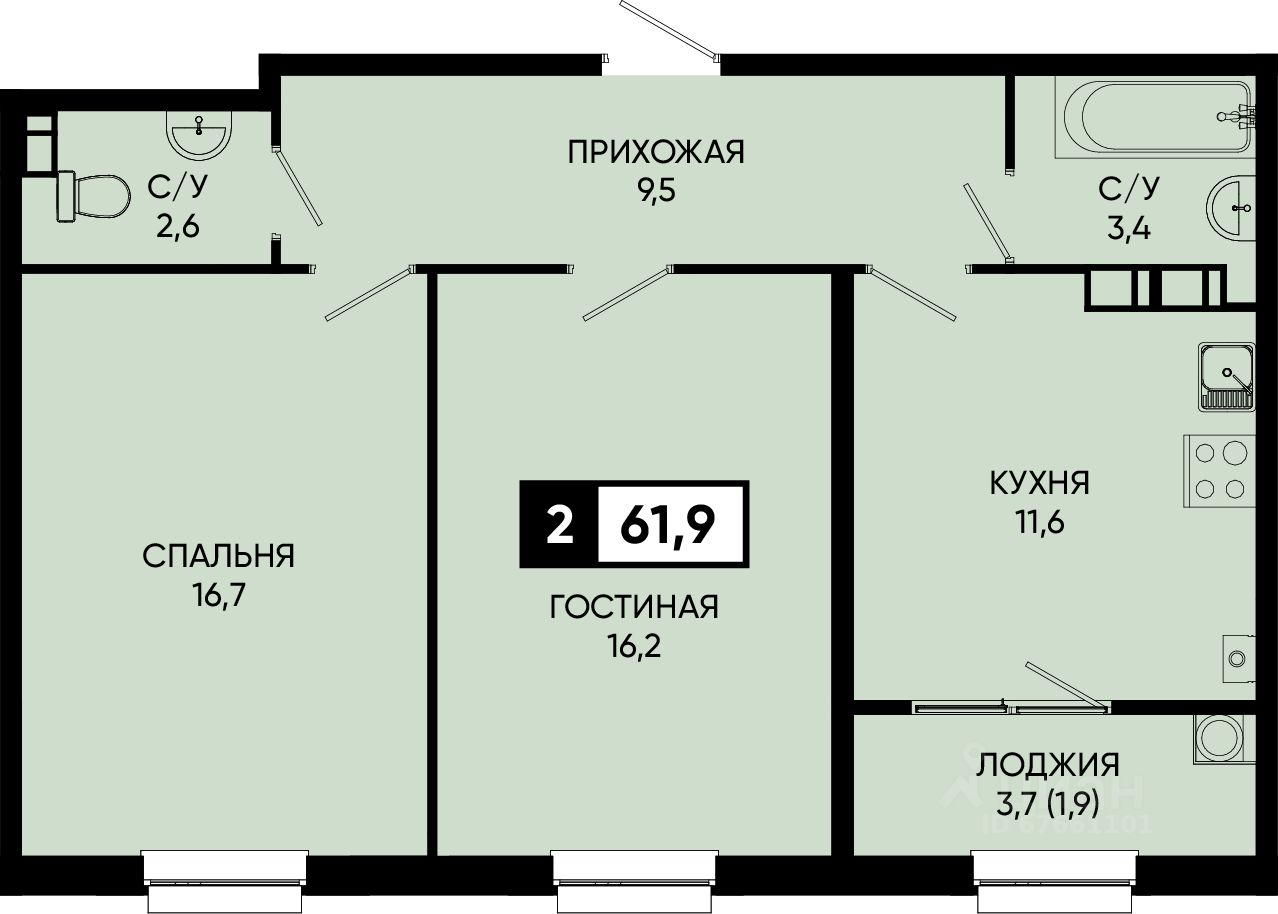 Общая площадь61,9 м2