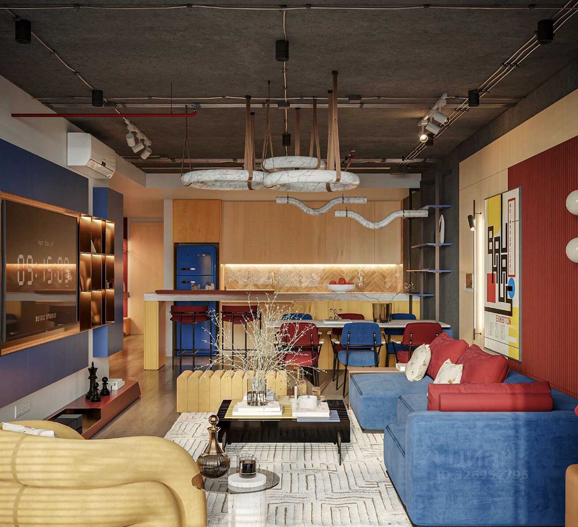 Особенности квартиры: — Просторные комнаты и современный ремонт, — Кухня-гостиная и две уютные спальни, — Зонирование для удобного использования пространства,