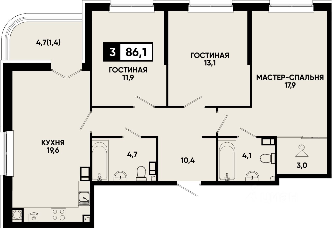 Общая площадь86,1 м2
