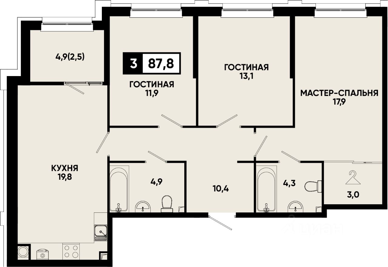 Общая площадь87,8 м2