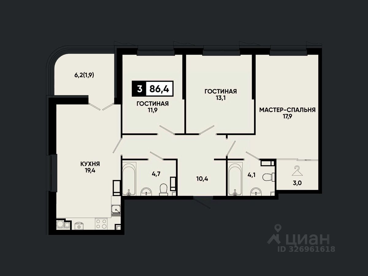 Пространство вашей семьи: Три раздельные комнаты и просторная кухня-гостиная — комфорт для всей семьи, Панорамные окна 2,2 м — квартира наполняется светом и открывает шикарные виды, Удобное расположение санузлов и мокрых зон — ремонт экономит время и деньги, Квартира готова к проживанию: ремонт, мебель и техника, Идеально подходит для жизни, сдачи в аренду или инвестиций.