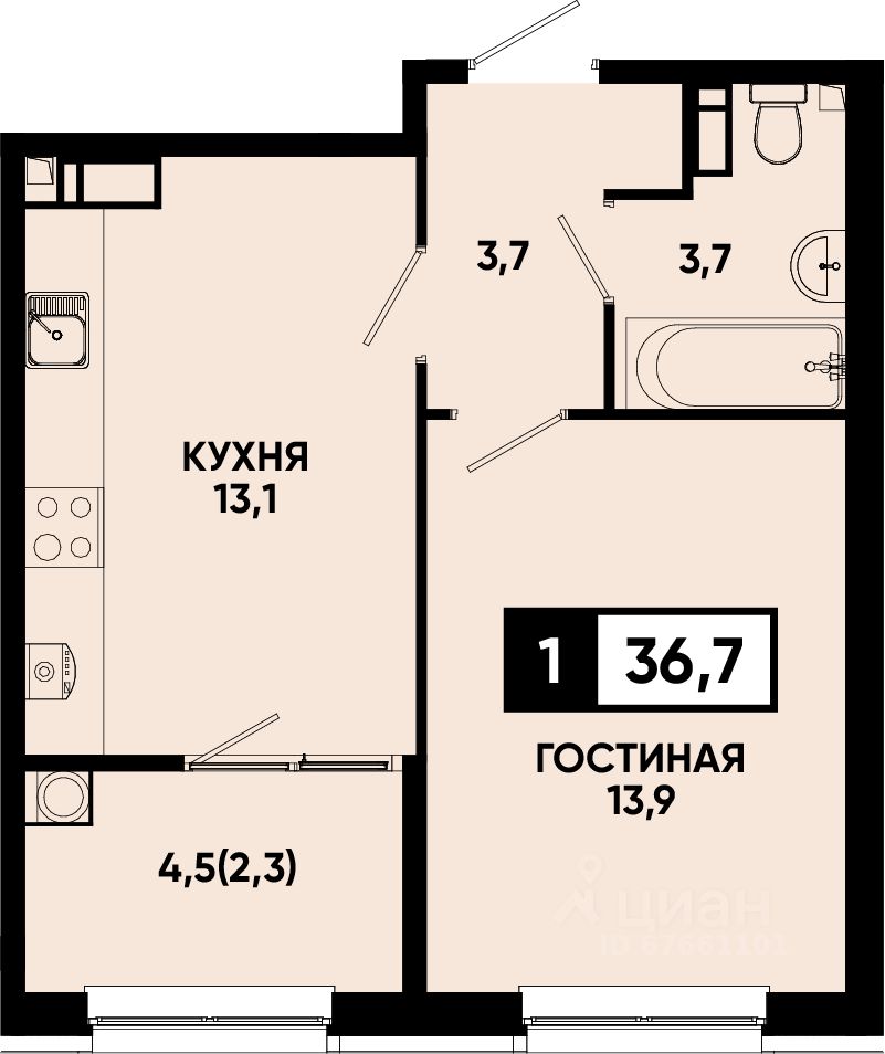 Общая площадь36,7 м2