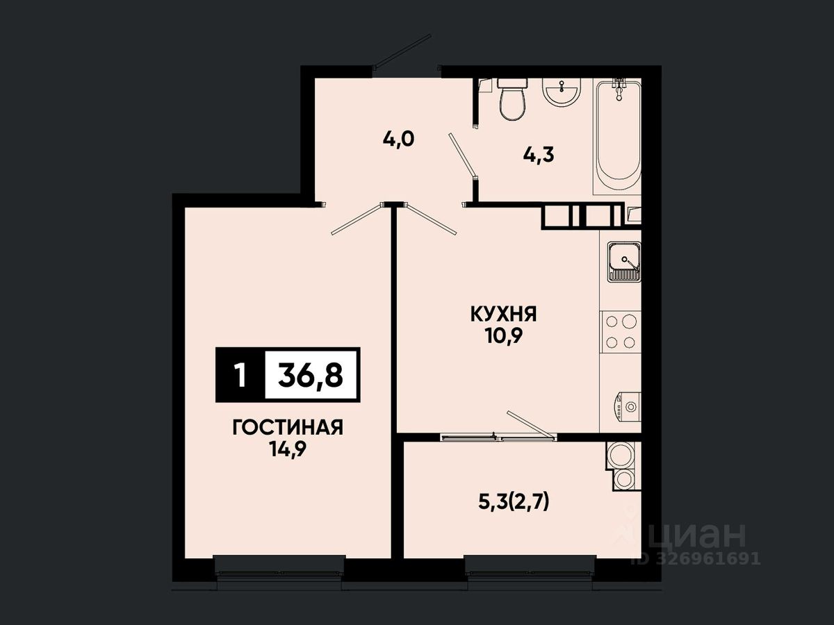 Общая площадь36,8 м2
