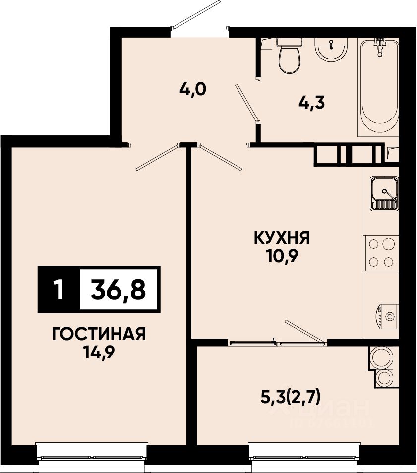 Общая площадь36,8 м2