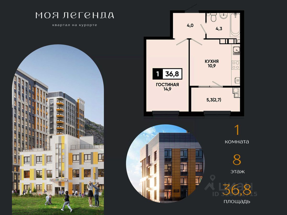 ЖК ''Моя Легенда'' — курортный комплекс: — 21 дом переменной этажности (914 этажей) на территории более 15 га, — Закрытые дворы на стилобате с концепцией ''без машин'', детские и спортивные зоны, лаунж-зоны, — Подземный и наземный паркинг, — Холлы с дизайнерской отделкой, стеклянные двери, керамогранит премиум-класса, подсветка, — Коммерческие помещения на стилобате: магазины, кафе, салоны красоты, — Собственный детский сад и физкультурно-оздоровительный комплекс.
