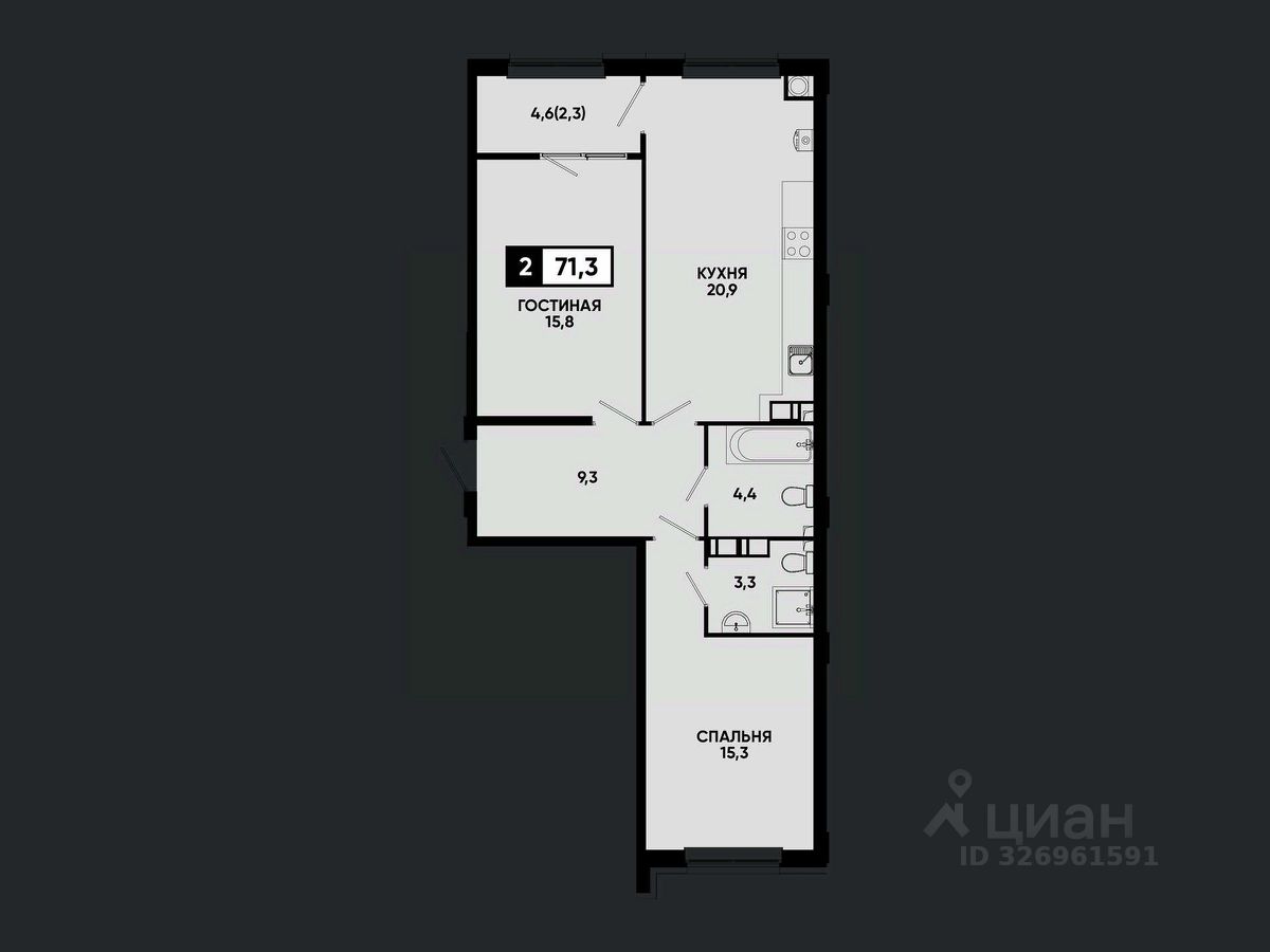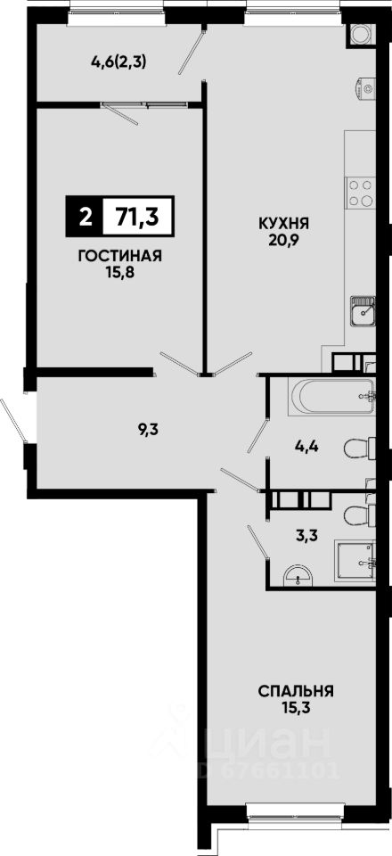 Общая площадь71,3 м2