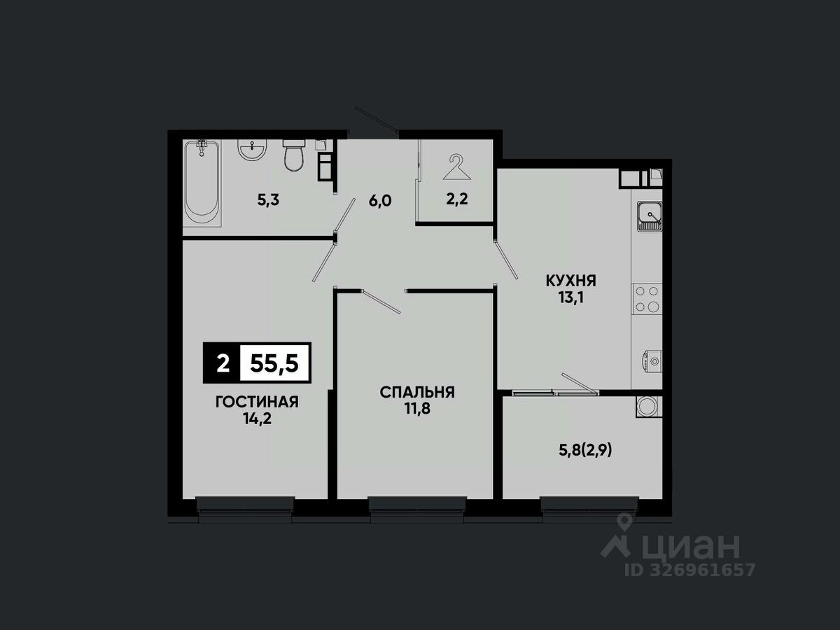Что вы получаете, выбирая 2-комнатную квартиру в ''Моей Легенде'': — Просторную планировку для семьи или для аренды — Полностью готовое жилье — заезжайте и живите! — Сделку напрямую с федеральным застройщиком ''ЮгСтройИнвест'' — никаких рисков и посредников