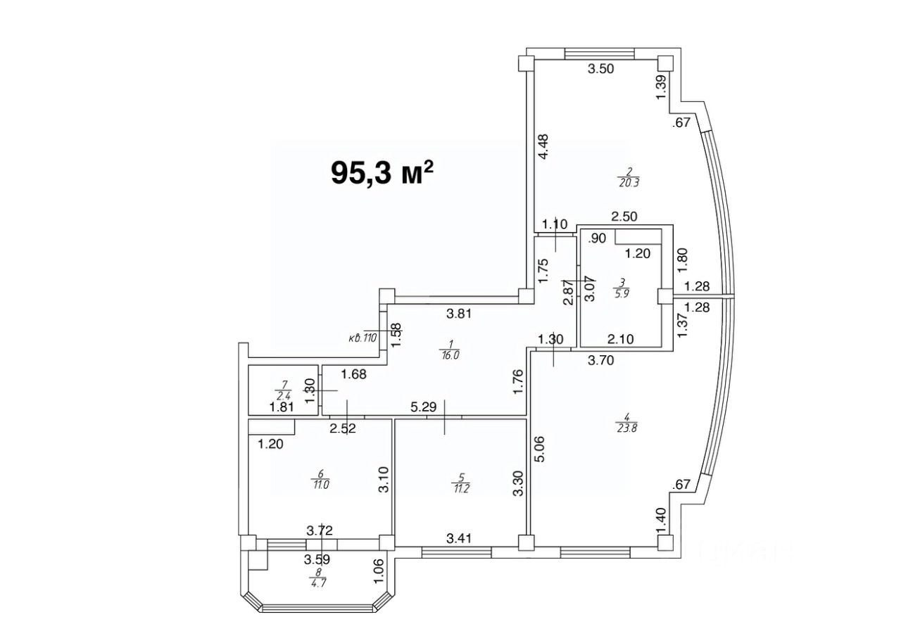 Общая площадь95,3 м2
