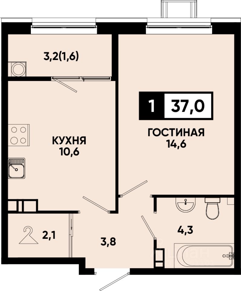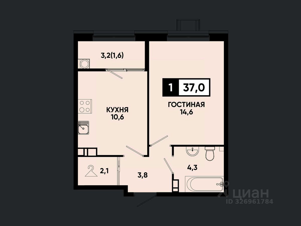 Общая площадь37 м2