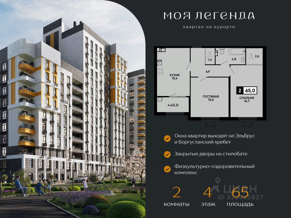 Что вы получаете, выбирая 2-комнатную квартиру в ''Моей Легенде'': — Просторную планировку для семьи или для аренды — Полностью готовое жилье — заезжайте и живите! — Сделку напрямую с федеральным застройщиком ''ЮгСтройИнвест'' — никаких рисков и посредников