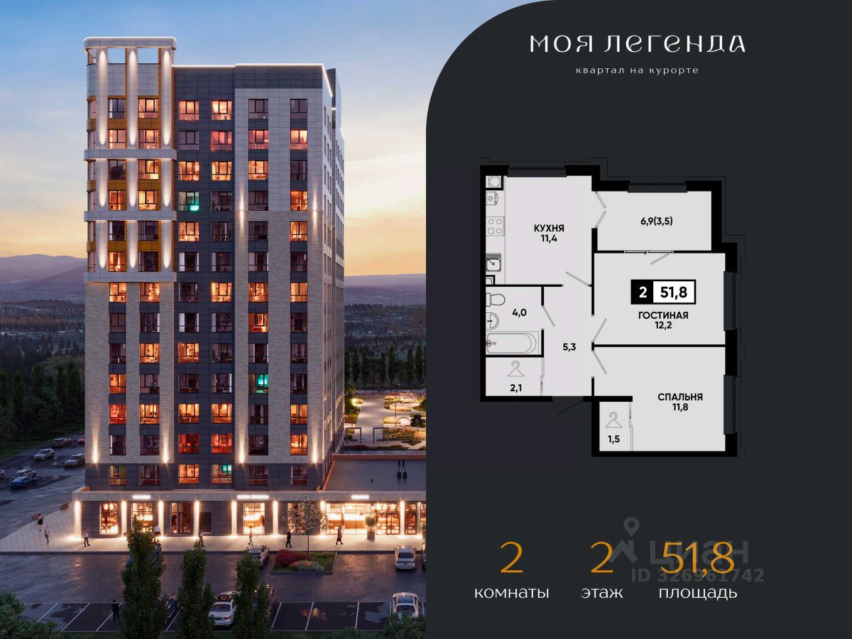 Что вы получаете, выбирая 2-комнатную квартиру в ''Моей Легенде'': — Просторную планировку для семьи или для аренды — Полностью готовое жилье — заезжайте и живите! — Сделку напрямую с федеральным застройщиком ''ЮгСтройИнвест'' — никаких рисков и посредников