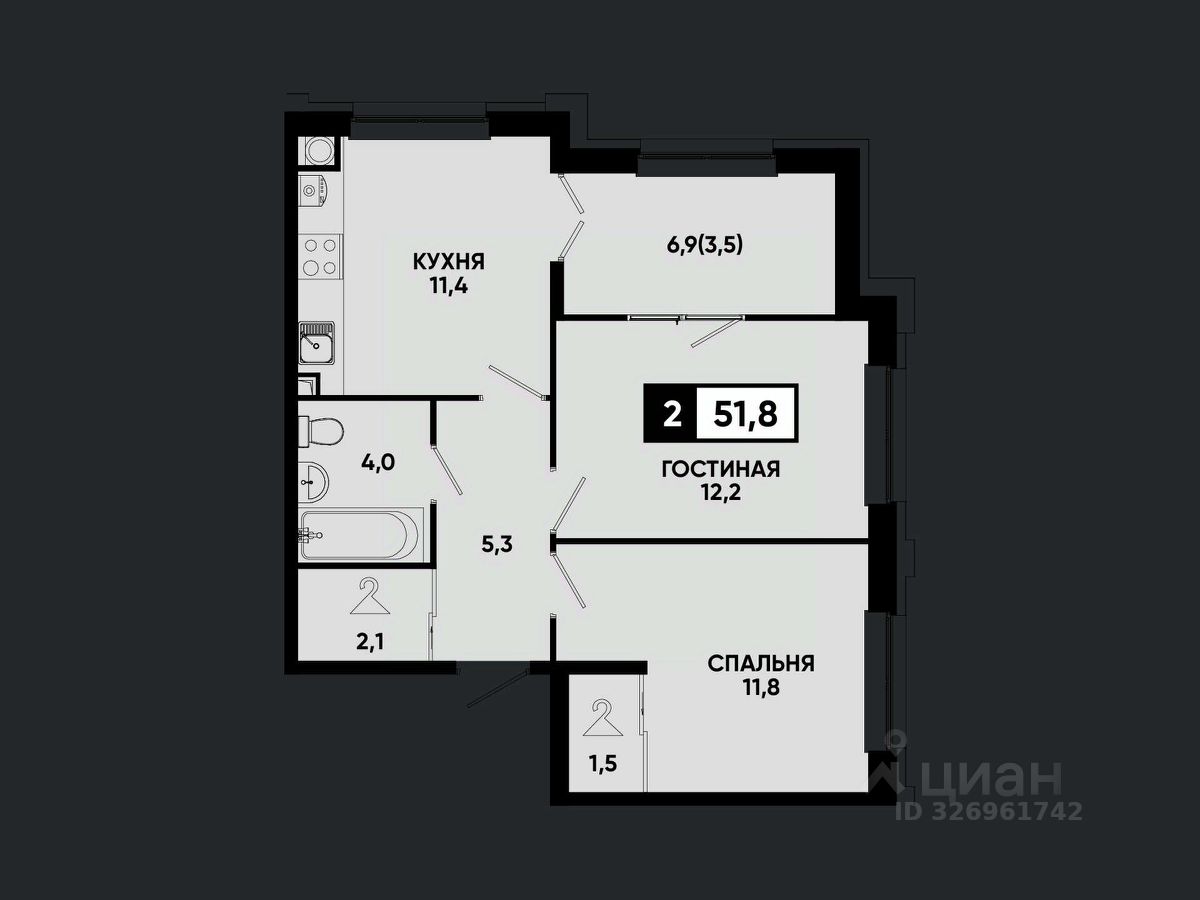 Общая площадь51,8 м2